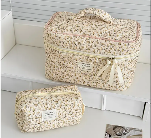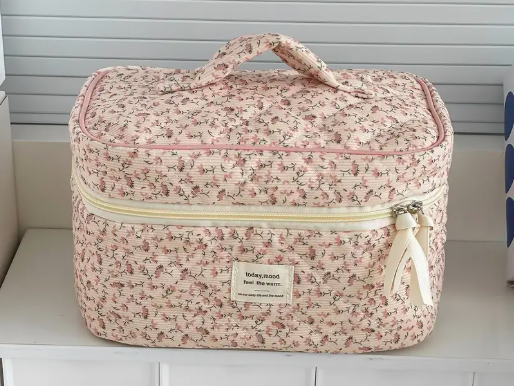 Large Capacity Quilted Cosmetic Organizer with Pouch and Pen Holder – Portable Travel Beauty Case